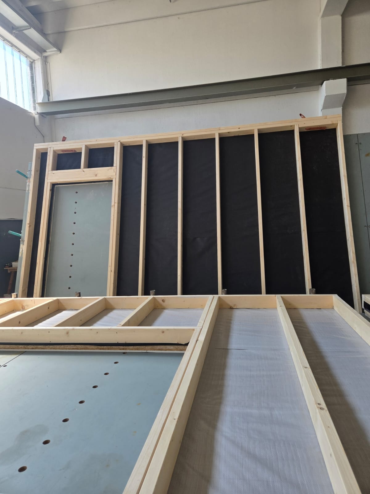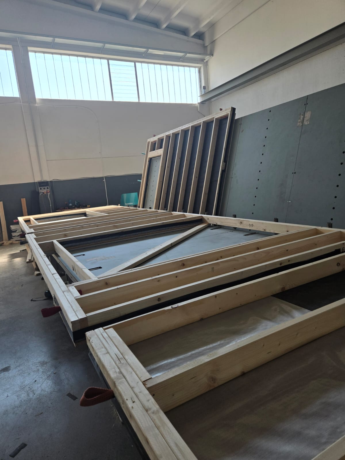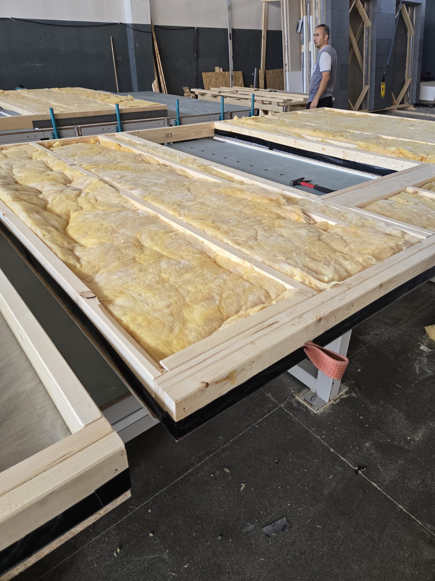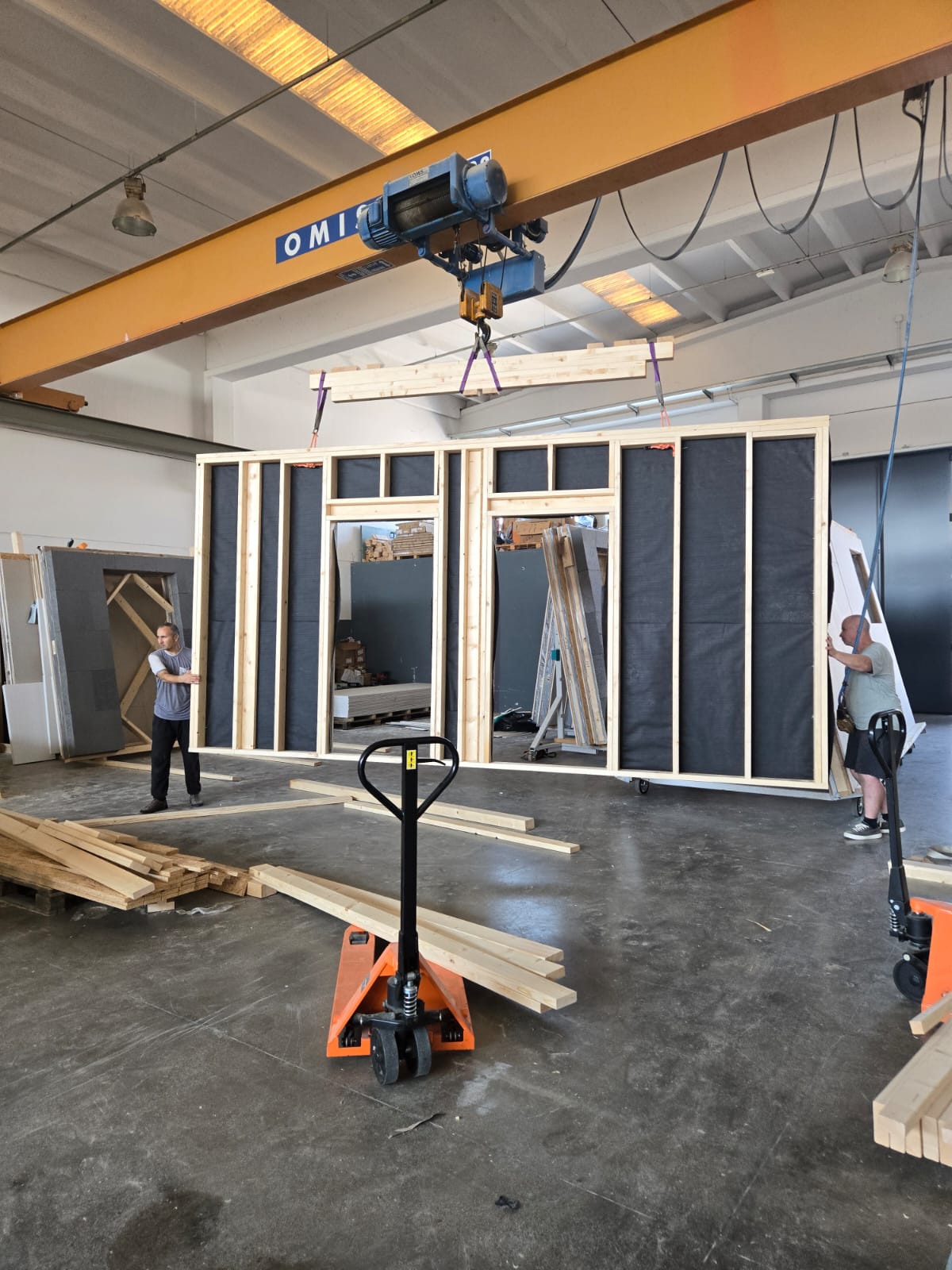 Die einzelnen Bauteile werden in unserer Fertigungshalle unter kontrollierten Bedingungen produziert. Präzise Maschinenarbeit und handwerkliches Können ergänzen sich hier perfekt. Durch die Vorfertigung können Bauzeiten drastisch verkürzt und witterungsbedingte Verzögerungen ausgeschlossen werden. Gleichzeitig sorgt diese Methode für weniger Materialverschwendung und eine höhere Ressourceneffizienz.