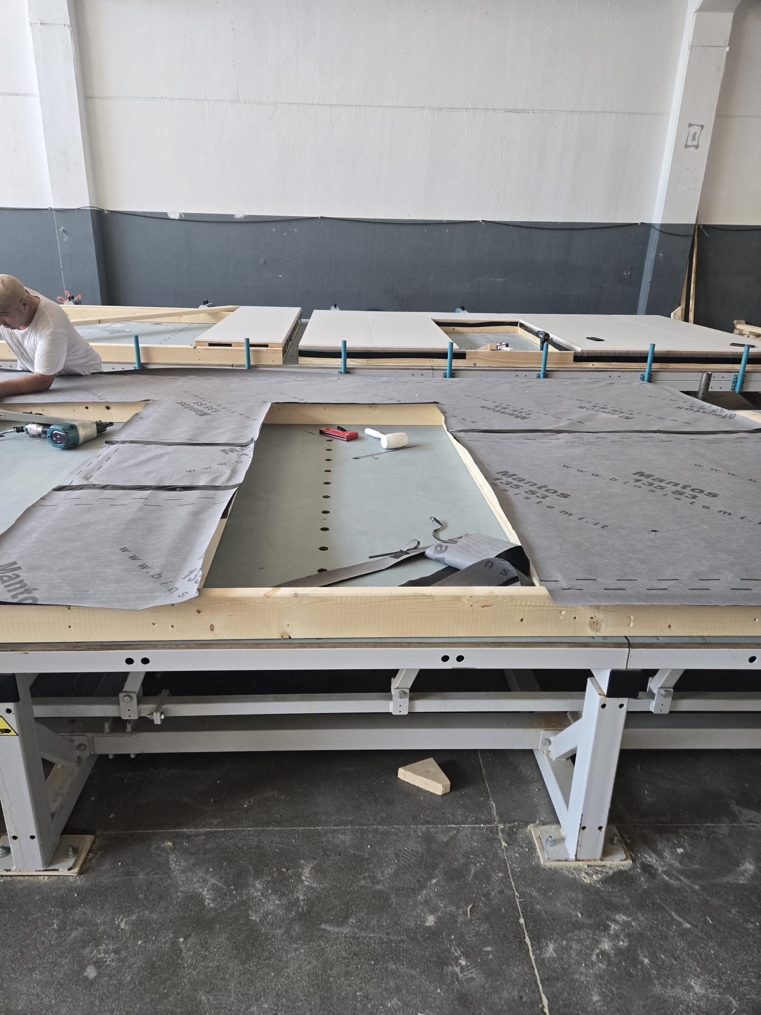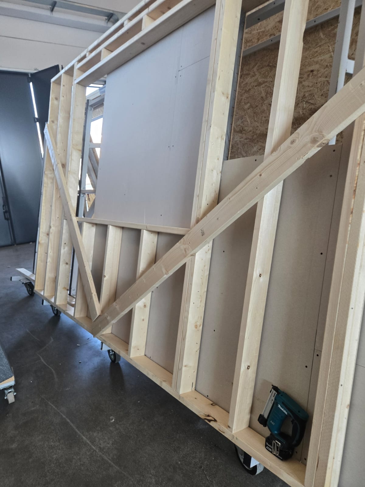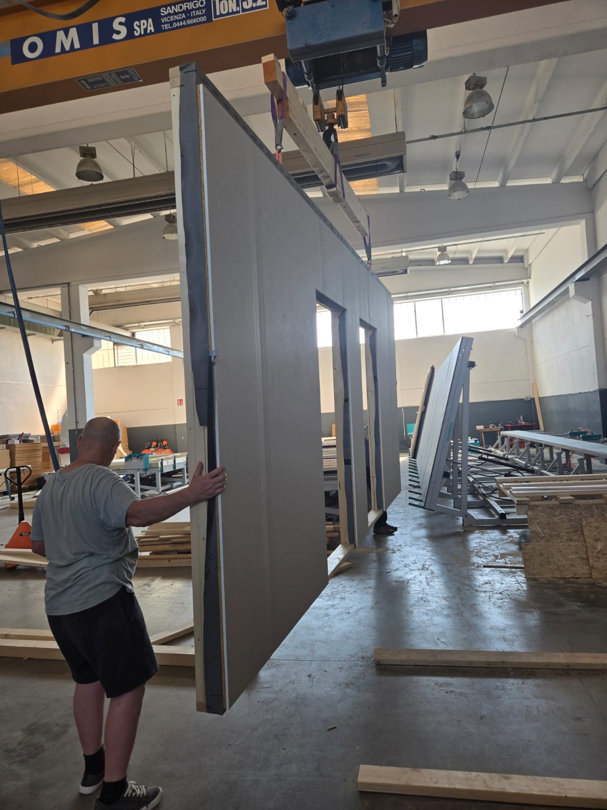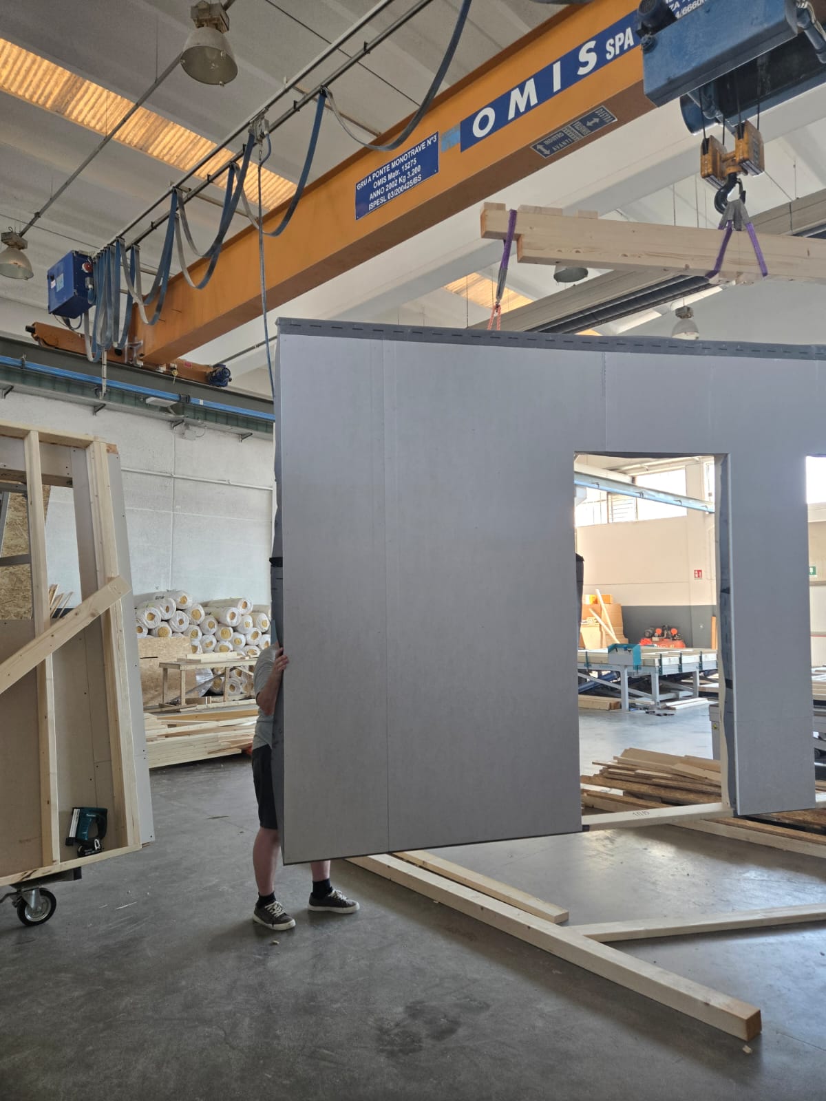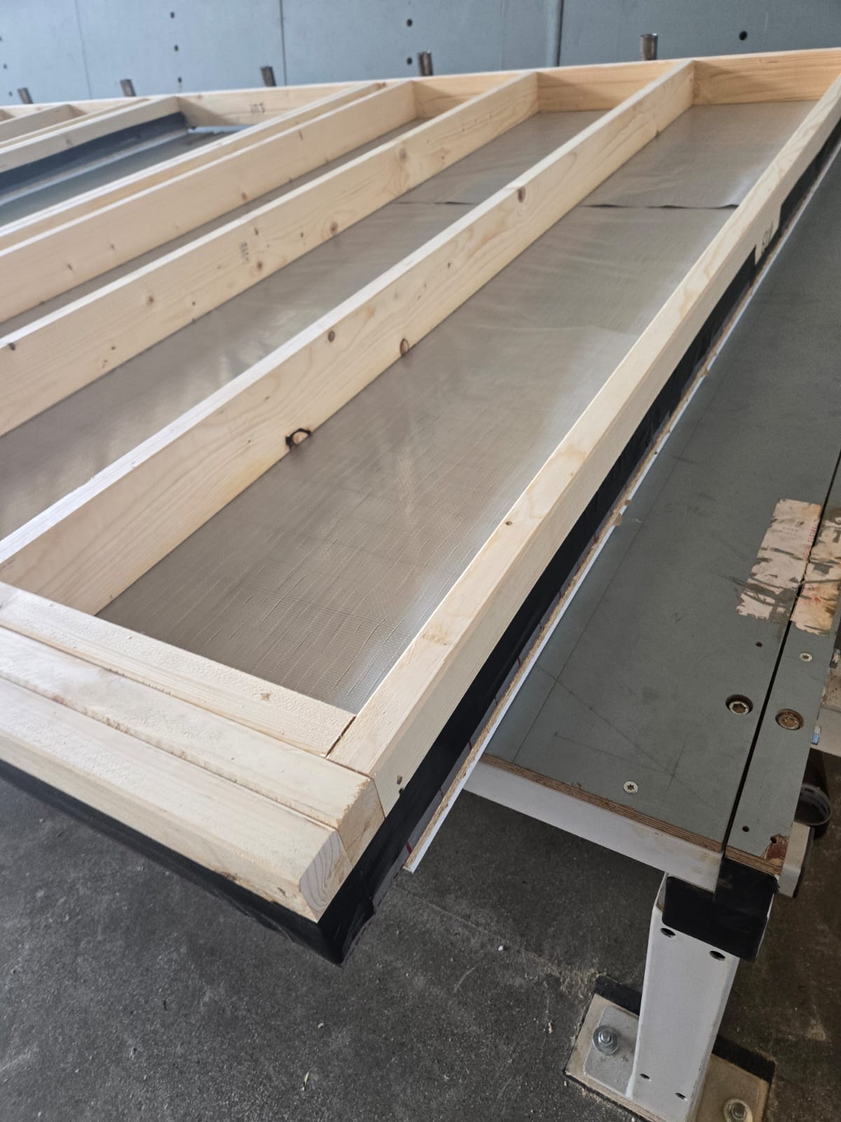 Die einzelnen Bauteile werden in unserer Fertigungshalle unter kontrollierten Bedingungen produziert. Präzise Maschinenarbeit und handwerkliches Können ergänzen sich hier perfekt. Durch die Vorfertigung können Bauzeiten drastisch verkürzt und witterungsbedingte Verzögerungen ausgeschlossen werden. Gleichzeitig sorgt diese Methode für weniger Materialverschwendung und eine höhere Ressourceneffizienz.