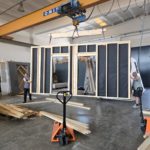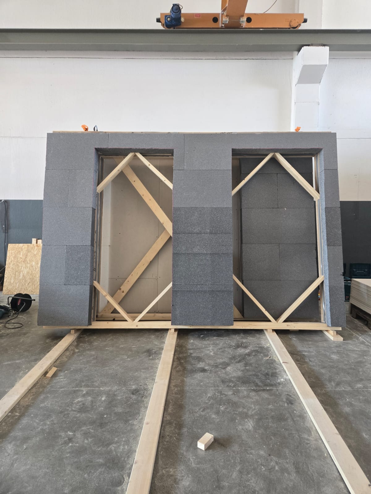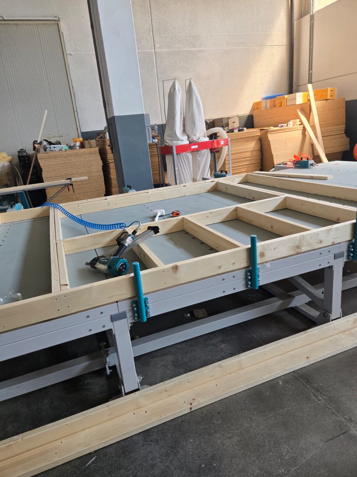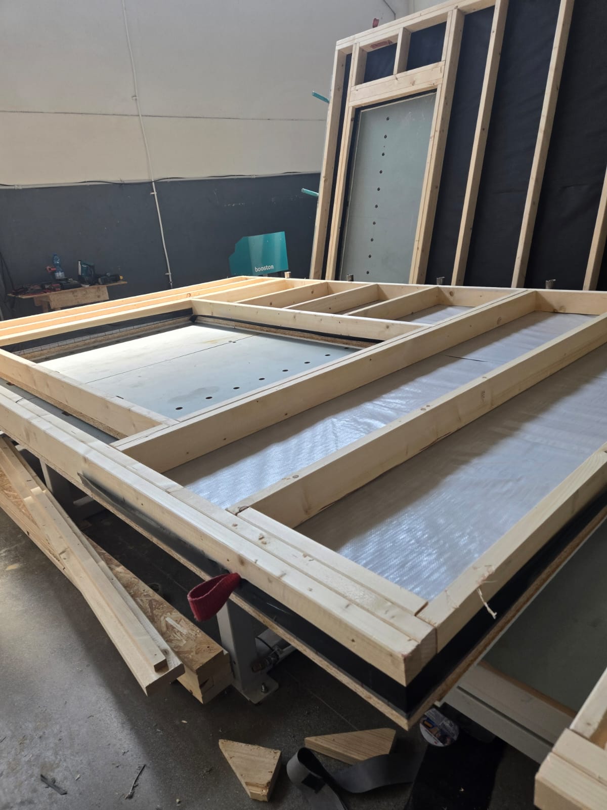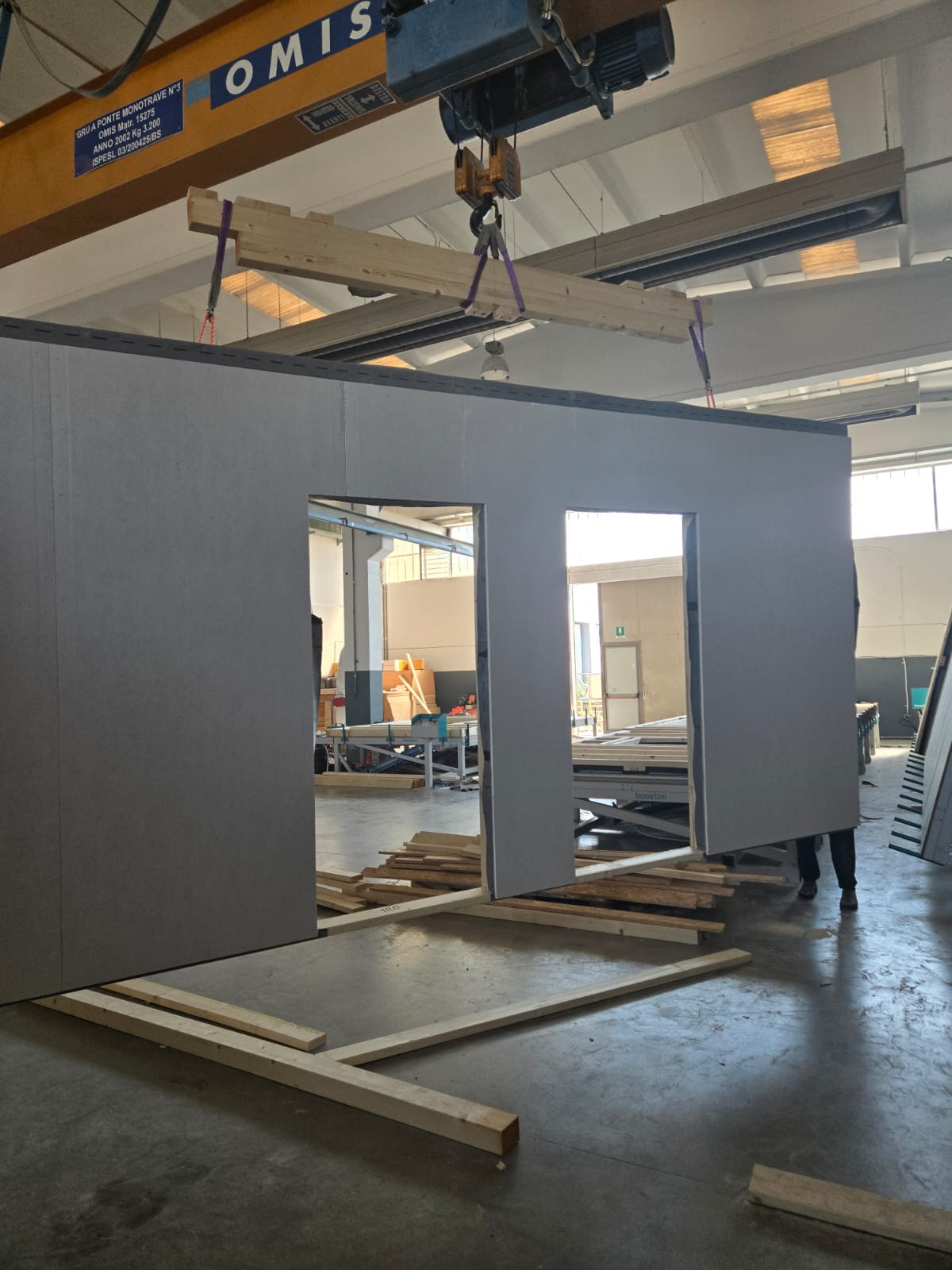 Die einzelnen Bauteile werden in unserer Fertigungshalle unter kontrollierten Bedingungen produziert. Präzise Maschinenarbeit und handwerkliches Können ergänzen sich hier perfekt. Durch die Vorfertigung können Bauzeiten drastisch verkürzt und witterungsbedingte Verzögerungen ausgeschlossen werden. Gleichzeitig sorgt diese Methode für weniger Materialverschwendung und eine höhere Ressourceneffizienz.
