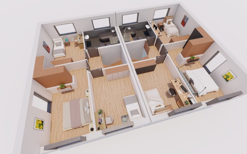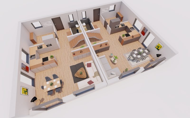 Die Doppelhaushälfte Lebensglück überzeugt mit einem durchdachten Grundriss, der Funktionalität und Ästhetik harmonisch vereint. Große, lichtdurchflutete Fenster, hochwertige Materialien und eine moderne Ausstattung schaffen ein einladendes Wohnambiente. Von großzügigen Wohnbereichen bis hin zu stilvollen Bädern – hier finden Familien den perfekten Raum für ihr Zusammenleben.