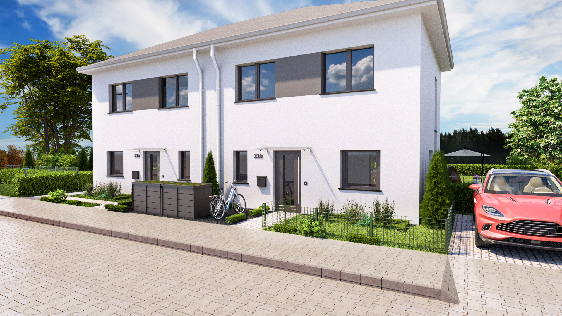Willkommen in Ihrem neuen Zuhause – der exklusiven Doppelhaushälfte Domizil Lebensglück! Diese moderne Immobilie vereint stilvolle Eleganz, höchste Energieeffizienz nach KfW55-Standard und familienfreundlichen Wohnkomfort. Entdecken Sie ein Zuhause, das Nachhaltigkeit, Komfort und Lebensfreude perfekt miteinander verbindet.