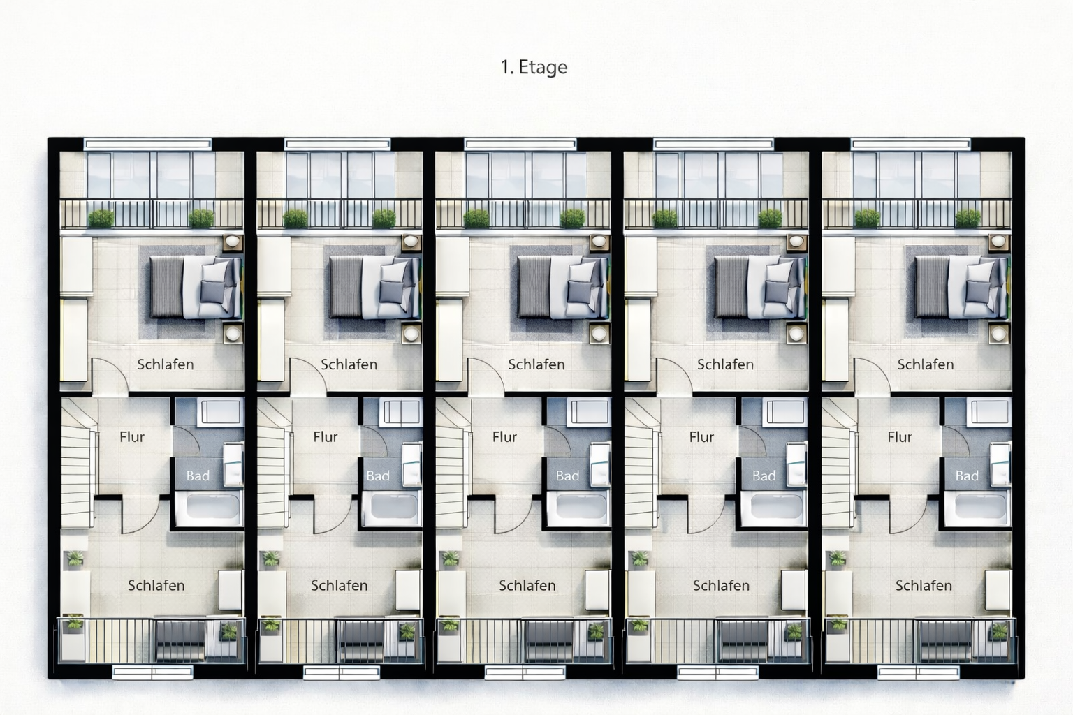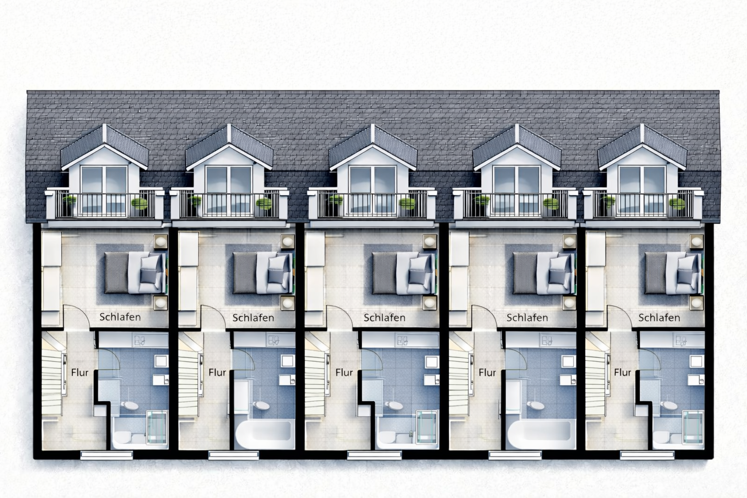 Dieses attraktive Neubau-Reihenhaus mit Keller entsteht in begehrter Lage